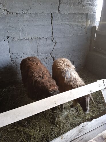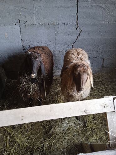 Продаются овцы (2 головы), порода — курдючные/мясо-шерстные типы. На фото — одна темно-коричневая и одна светло-бурая. Длинноухие, курдюк хорошо развит. Содержатся в стойле на сене.