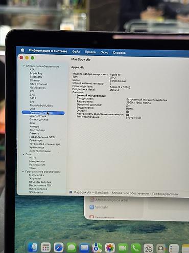Ноутбук, Apple, 8 ГБ ОЗУ, Apple M1, 13.3 ", Для работы, учебы, память NVMe SSD