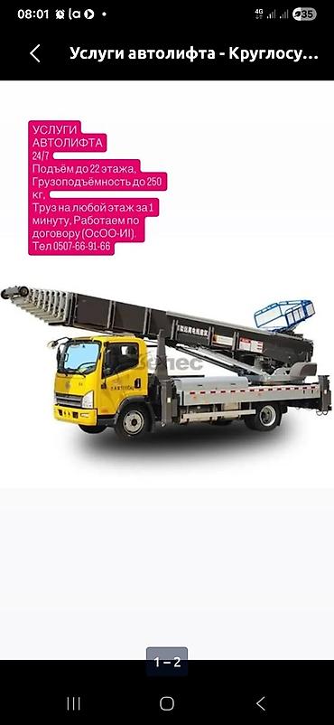 Услуги автолифта 24/7 - Подъём и спуск различных грузов на высоту до 20–21 этажей. - Работа по всем районам. - Автолифты разной высоты вылета, выезд с опытным оператором. - Грузоподъемность зависи...