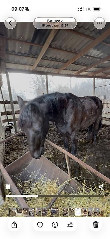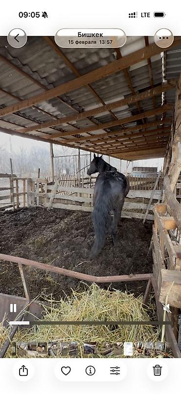 Лошадь (рыжая масть) в стойле. семиз тай сатылат 80 000сом, бооз бээ сатылат 110 000 сом - Масть: рыжая, отметина на лбу, светлые чулки на ногах частично. - Возраст: не указан (визуально молодой ко...