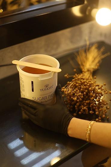 - Услуга удаления нежелательных волос сахарной пастой.