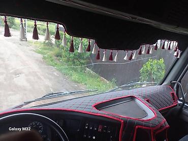Дополнительно на фото: процесс мойки и вид из кабины; установлен козырёк и декоративные шторки. Номера скрыты на изображениях.