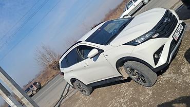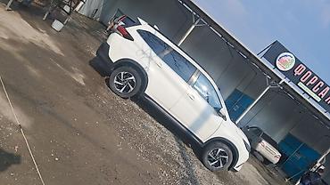 - Кузов: компактный кроссовер, белый цвет, пластиковые защитные накладки по периметру, рейлинги на крыше, задний спойлер.