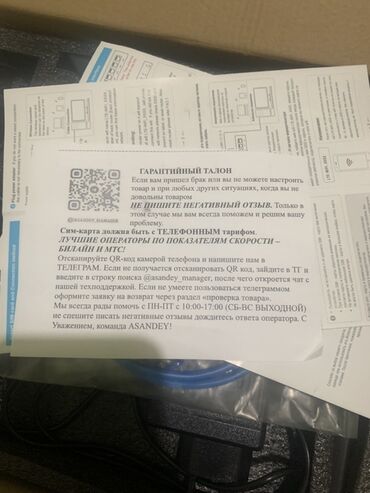 - Инструкция и гарантийный талон с QR‑кодом для связи с техподдержкой через Telegram (указаны часы работы Пн–Пт 10:00–17:00)