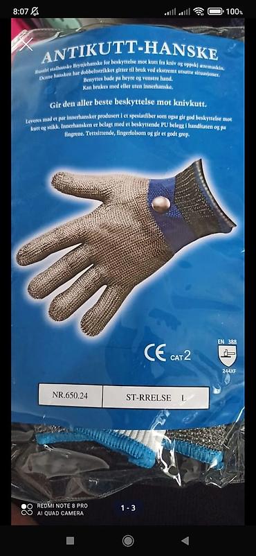 Антипрорезные перчатки из нержавеющей стальной кольчужной сетки (ANTIKUTT-HANSKE)