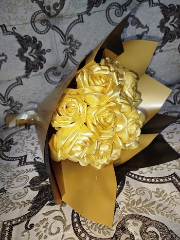 Авторские букеты из атласных роз - Ручная работа: розы выполнены из