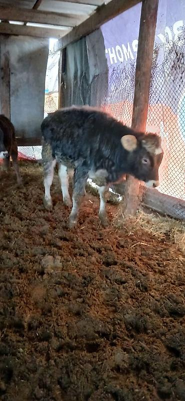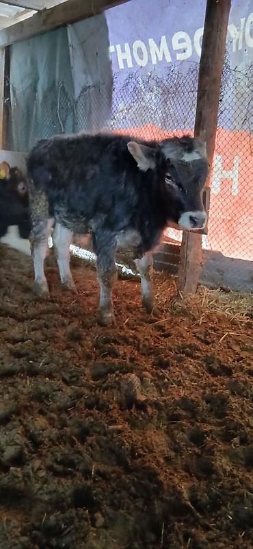 Бык-подросток черной масти, с биркой в ухе. Содержится в стойле, на грубом и сочном корме. Плотный костяк, развитая мускулатура, прямой постав ног. Подходит для откорма на мясо или для разведения. ...