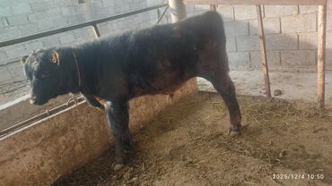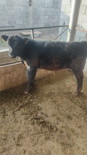 Бык мясного направления. - Окрас: чёрный, с небольшими светлыми отметинами на морде и ногах. - Рога короткие, ровные. - Содержится на привязи в стойле, спокойный, послушный в стойле. - Кормление: ...