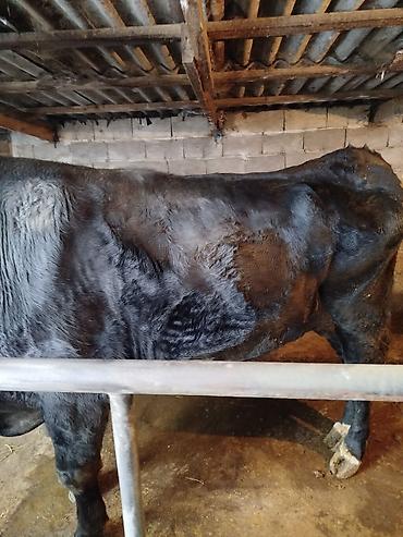 Бык чёрной масти, мясного направления. Крупный, мощный корпус с широкой грудью и хорошо развитыми окороками, крепкий костяк, ровная линия спины. Рога короткие. Содержится в стойле, приучен к привязи и кормушке, спокойный темперамент. Подходит для откорма на мясо или как производитель в личном хозяйстве. Удобно обслуживать: стоит спокойно, принимает корм, пьёт из поилки. Отличная мышечная кондиция, плотная шкура, крепкие копыта. бык чистый американец на племя, прошу по пустикам не звонить.