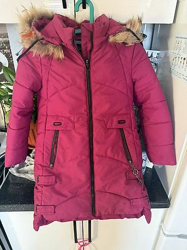 2) Малиновая детская парка с меховой отделкой