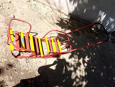 - Сиденья: рейки из дерева, окрашенные в яркие цвета (желтый и красный) для лучшей заметности на снегу.
