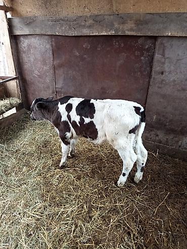 Эркер Телёнок, чёрно-белый окрас (пестрый), порода по типу алатуйская Содержание в тёплом хлеву на глубокой подстилке из соломы. Рацион: цельное молоко/заменитель молока, сено, стартовый комбикорм,...