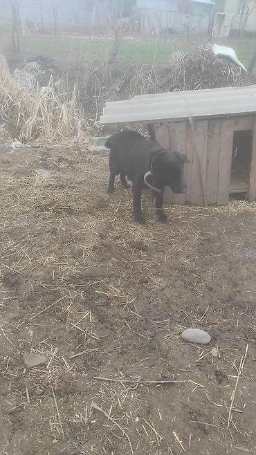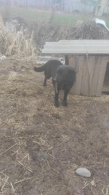 Предлагается к продаже собака черного окраса. Животное находится на открытой территории, рядом с деревянной будкой. Собака имеет короткую шерсть и средний размер, что делает ее подходящей как для охраны, так и для содержания во дворе. Внешний вид свидетельствует о крепком телосложении.