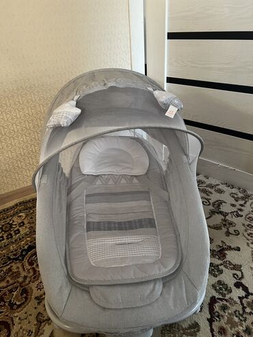 Электро-качалка. С рождения до 17 килограмм. Можно брать на природу, москитная сетка идет в комплекте. Работает от сети и батареек. Штатные мелодии и звуки природы.Регулировка наклона спины. Лучшее...