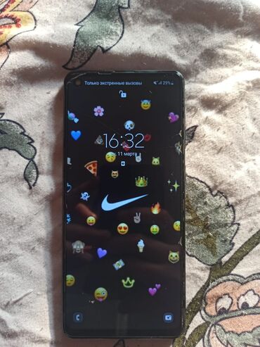 - На экране установлены обои, устройство включается, отображает время, уведомления и уровень заряда.