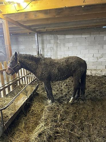Ат сатылат жазга 1 асый Бою 165-167см Порода орловский менен смешаный Бээ токтонкон улак королек Лошадь рабочего/верхового типа. - Масть: гнедая, отметина — белая звезда на лбу, светлые носки н...