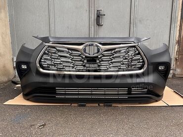 Передний комплект ноускат для Toyota Highlander (кузов U50, дорестайлинг). Состав: - передний бампер в сборе (черный) - решетка радиатора с хромированными планками и эмблемой Toyota - противотуман...
