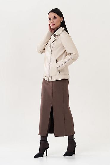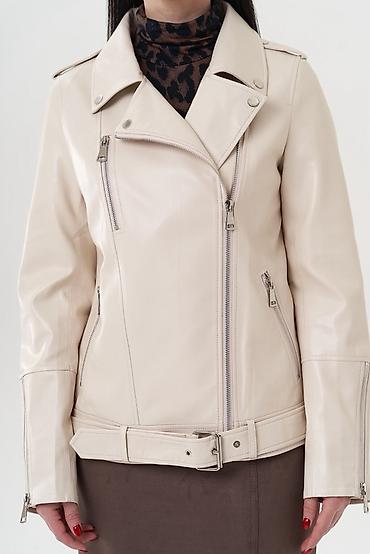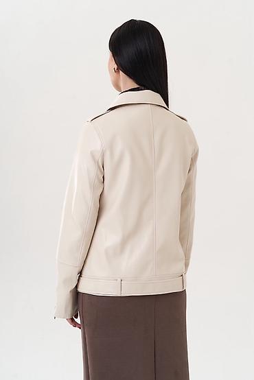 Кожаная куртка-косуха светло-молочного оттенка. - Материал: экокожа с