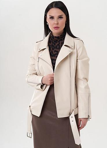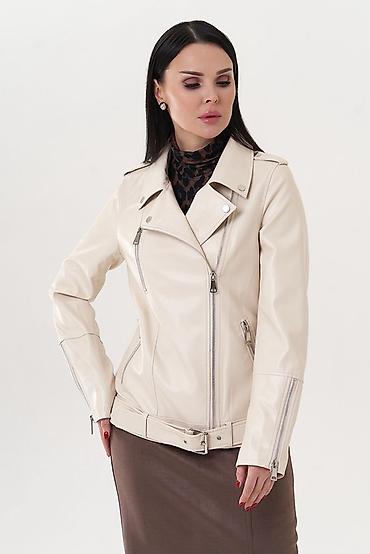 Женская куртка-косуха из экокожи, цвет: молочный/кремовый.