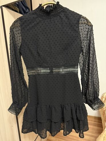 Другие особенности платьяЧерное женское платье мини с романтичными деталями.