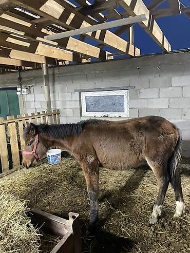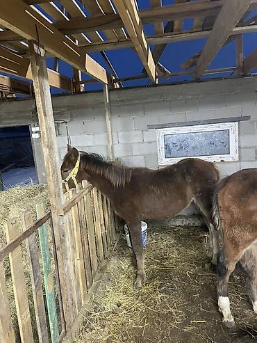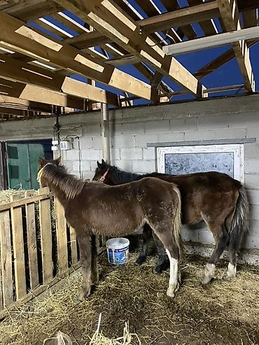 Жеребята, классический тип, масть гнедо-рыжая с отметинами на ногах. На фото — двое молодых лошадей, выращиваются в стойле, приучены к недоуздку. Спокойные, контактные, стоят на привязи, без агрессии к людям и сородичам. Кормление сеном и зерносмесью, доступ к воде. Подойдут для дальнейшего выращивания под верховую или упряжную работу, для частного подворья/фермы. Удобные в уходе: чистка, подвод к кормушке и ведру, отсутствие страха перед человеком. Отличная основа для дальнейшего обучения: водить в поводу, ковка, выездка.