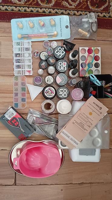 - Пудры, блёстки, стразы, бульонки, фольга, ленты для дизайна, палитры.
