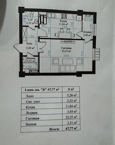 Планировка 1-комнатной квартиры, тип «Б», общая площадь 47,77 м²: