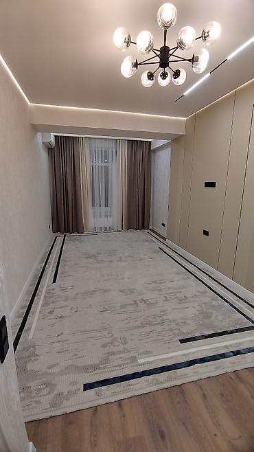 - На полу в комнатах ламинат, ковровые покрытия; по всей квартире установлены современные потолочные и трековые светильники, розетки и выключатели в едином стиле.
