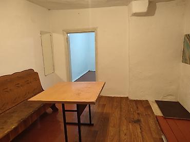 - Отделка: окрашенные стены и потолки, дощатые полы, частично уложен ламинат в зоне кухни/прихожей.