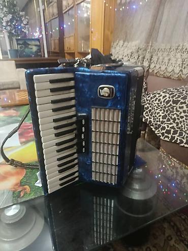 - Левая сторона: стандартный басовый блок с кнопками (кнопочная раскладка).