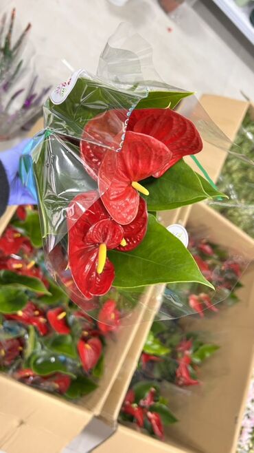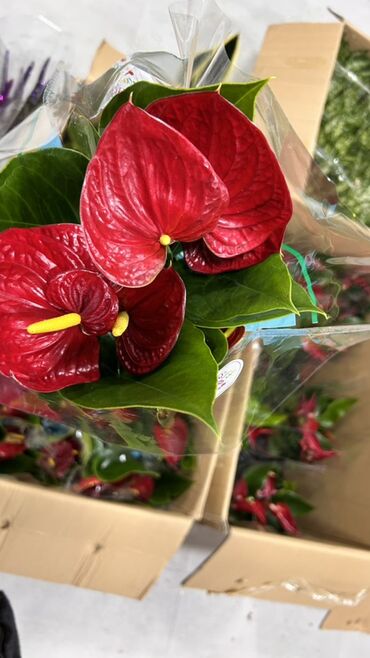 Антуриум (Anthurium) – цена оптовая,акция на Новогодние праздики🔥🔥🔥горшечное декоративно-цветущее растение с эффектными глянцевыми красными прицветниками и ярко‑жёлтыми початками, в индивидуальной прозрачной упаковке. Компактные кустики с плотной темно‑зеленой листвой, подходят для дома и офиса, долго цветут.