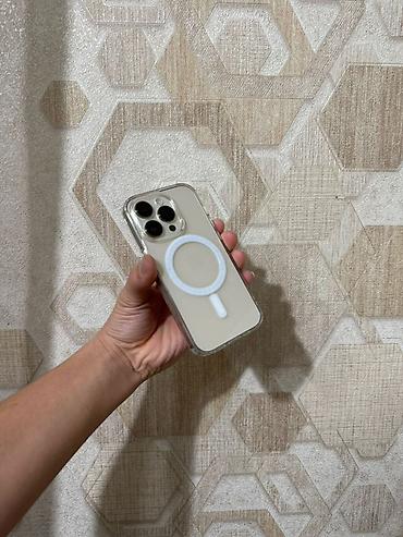 - Прозрачный чехол с поддержкой MagSafe на фото (кольцо магнитов видно на задней стороне)
