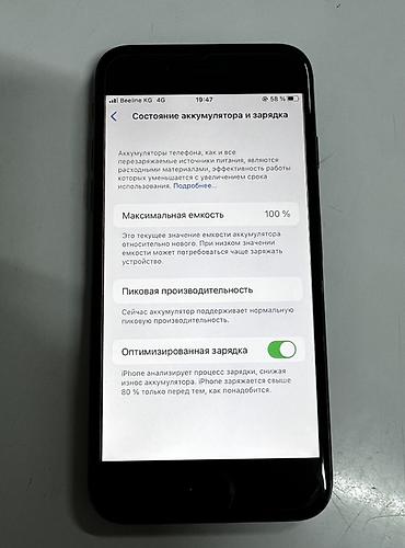 - Аккумулятор: максимальная емкость 100% (скрин «Состояние аккумулятора»), поддерживает пиковую производительность, включена оптимизированная зарядка.