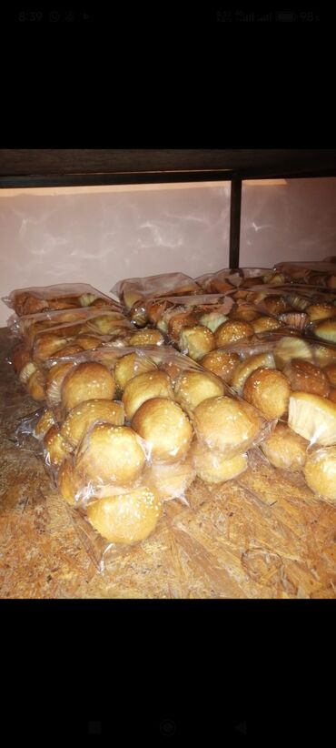- Мини-булочки/пампушки в пакетах — золотистые, с кунжутом.