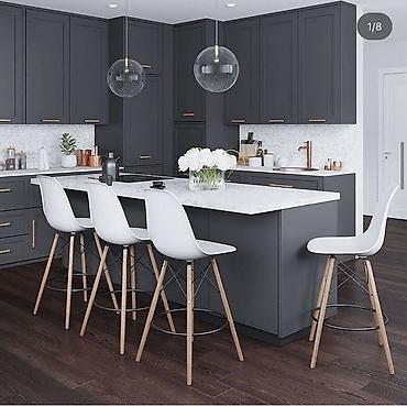 - Совместимость интерьера: сканди, минимализм, современный, лофт; гармонируют с белыми, серыми и темными кухнями.