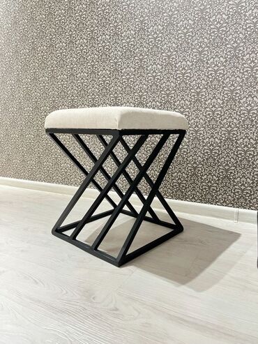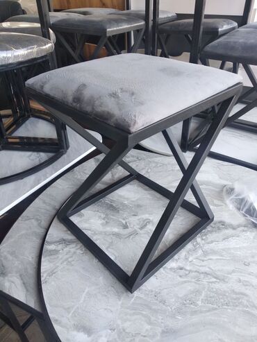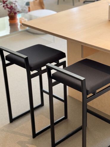 - Каркас: прочный металл с матовым черным покрытием, геометрические формы (прямоугольная, Х‑образная или с невысокой спинкой‑перекладиной — варианты на фото).