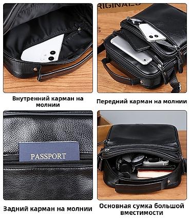 Мужская сумка через плечо, компактный кросс-боди формат. - Цвет: черный. - Материал: фактура под крокодила, кожа,плотная, держит форму. - Конструкция: прямоугольная, вертикальная посадка. - Отд...