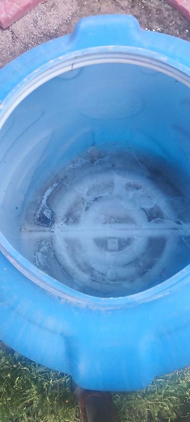 Пластиковая бочка синего цвета для воды/жидкостей. - Материал: плотный пищевой пластик (ПНД). - Объем: ориентировочно 200–250 л (стандартный диаметр и высота бочки этого типа). - Форма: цилиндриче...