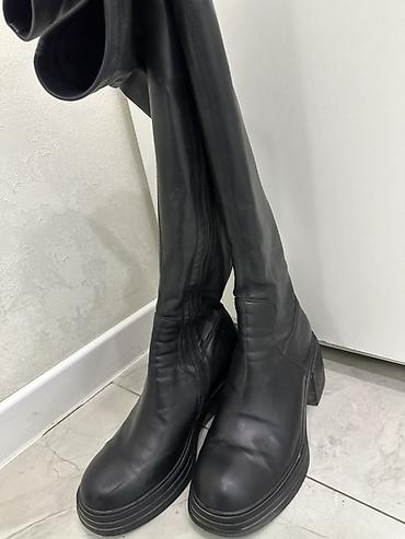Высокие кожаные сапоги в ковбойском стиле - Материал: натуральная