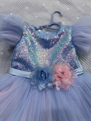 Нарядное детское платье «принцесса» в нежно‑сиренево‑голубой гамме.
