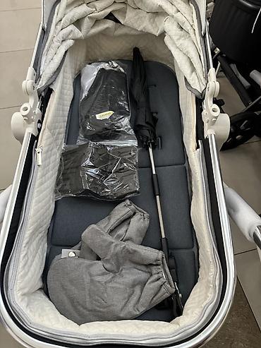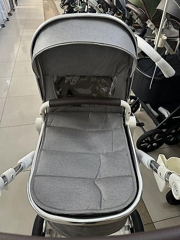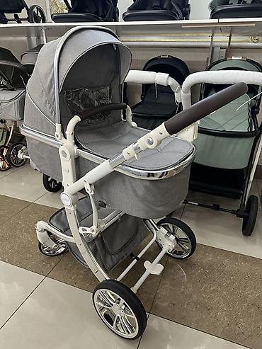 Подходит с рождения. Цвет: серый с белыми и хромированными элементами. Стильный дизайн, удобство в городе и парке.