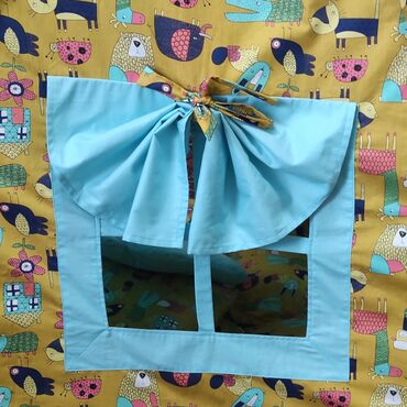 - Конструкция: 4 деревянные гладкие стойки, тканевые полотнища стягиваются сверху лентой; вход фиксируется завязками. Есть окошко с рамкой/перекладиной.
