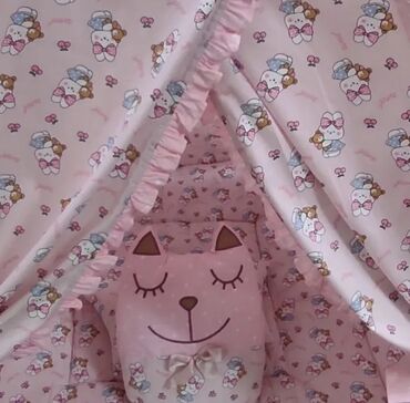 - Материалы: хлопковая ткань (плотная, дышащая), наполнитель мата — мягкий, держит форму; декоративная тесьма/помпоны по кромке в некоторых вариантах.