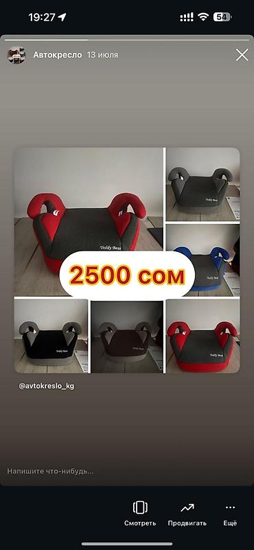 Отдельно в наличии бустер Teddy Bear — разные цвета (красный/серый/синий/черный/коричневый). Цена: 2500 сом.