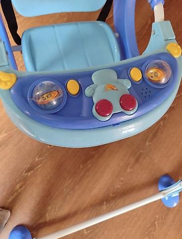 - Передняя панель-столик: игровые элементы и кнопки, два прозрачных шарика-вращалки, светозвуковой модуль (кнопки на панели). Столик съемный/поднимается для удобной посадки ребенка.