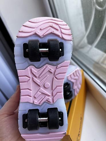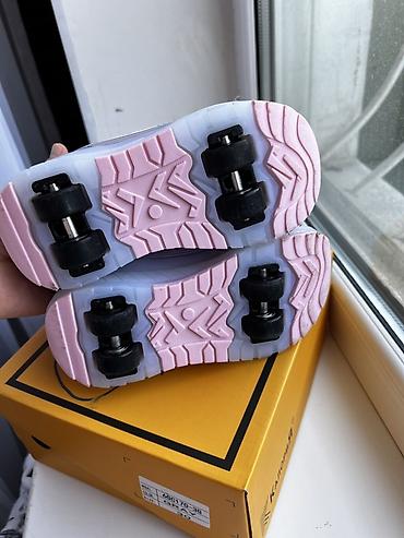 - Встроенные ролики: по 2 колеса на каждой подошве, расположены по центру; подшипники на осях, рассчитаны на катание по ровным поверхностям