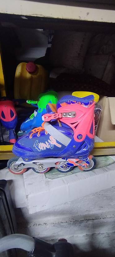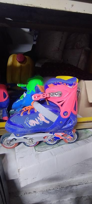 - Колёса: 4 колеса на каждом коньке, полиуретановые, разноцветные.