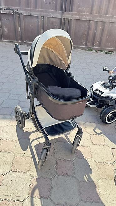 - Коляска с глубокой люлькой, большим капюшоном и нижней корзиной для вещей