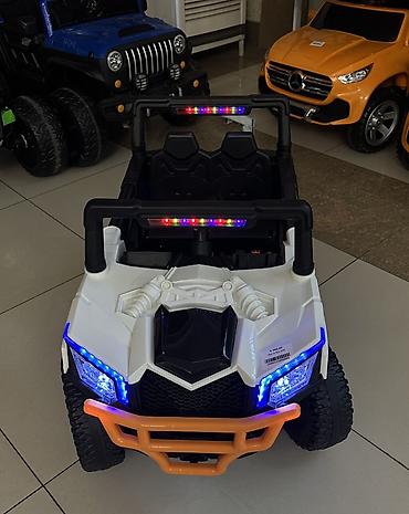 Детский электромобиль-пикап (стиль внедорожника) - Кузов пикап с открытым багажным отсеком сзади - Полноразмерные двери, передние открываются - Светодиодные фары и подсветка на дуге безопасности н...