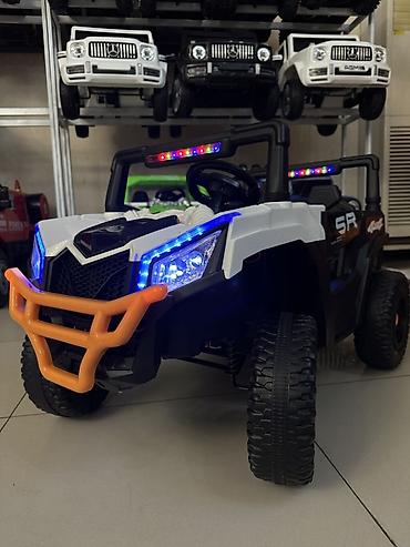 - Кузов: брутальный багги/UTV, широкие колеса с глубоким протектором для уверенного хода по плитке и плотному грунту